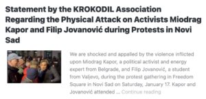 Jan. 20, 2026. Statement by the KROKODIL Association Regarding the Physical Attack on Activists Miodrag Kapor and Filip Jovanović during Students Protests in Novi Sad