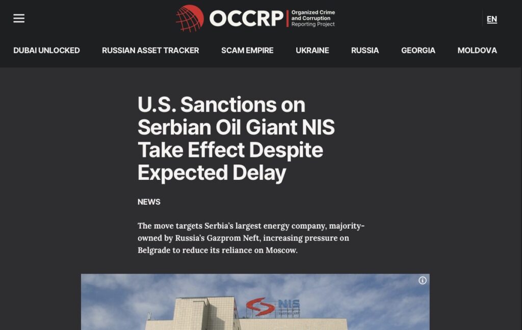 Oct. 9, 2025. U.S. Sanctions on Serbian Oil Giant NIS Take Effect Despite Expected Delay | OCCRP